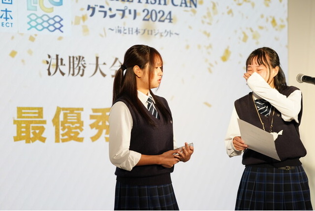 優勝した福岡県立水産高等学校の生徒たち(左:永島結友・右:博多屋柚羽)