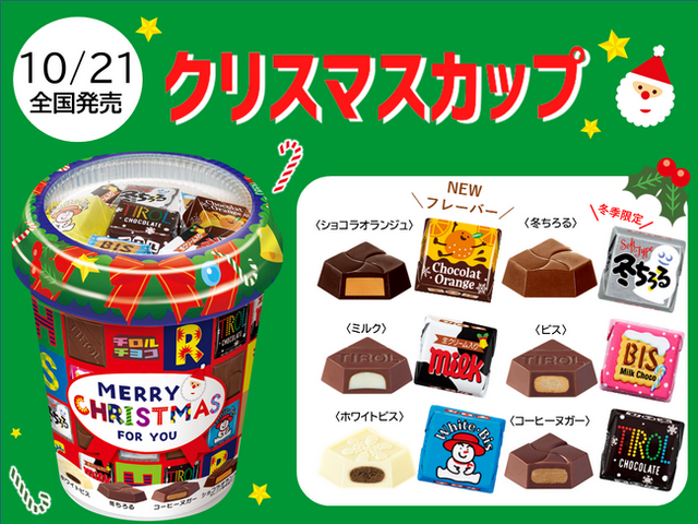 チロルチョコ株式会社(東京都千代田区、代表取締役社長・松尾裕二)は、「クリスマスカップ」を10月21日(月)より全国で発売します。