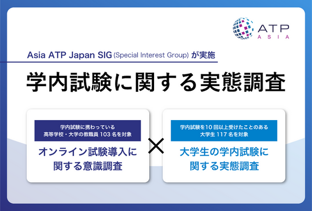 Asia ATP Japan SIG(Special Interest Group) ※1 ※2は、企業に比べ、学校におけるオンライン試験の導入が進まない原因を明らかにすることを目的に、学内試験に関する実態調査を、学校側、学生側それぞれの目線から実施しました。このたび、調査の全容をまとめたレポートを公開しましたので、お知らせいたします。