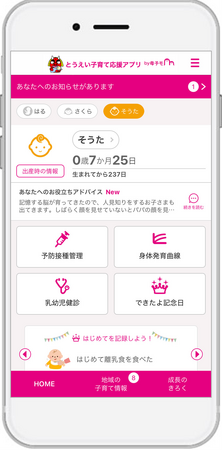 愛知県東栄町に採用された『とうえい子育て応援アプリ』は、スマートフォン・タブレット端末・PCに対応したサービスで、妊産婦と子どもの健康データの記録・管理や予防接種のスケジュール管理、出産・育児に関するアドバイスの提供、離れた地域に住む祖父母など家族との共有機能や、町が配信する地域の情報をお知らせするなど、育児や仕事に忙しい母親や父親を助けてくれる便利な機能が充実しています。