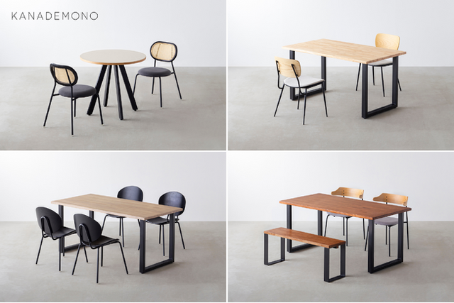 体験型ショールーム「KANADEMONO BASE」を中心に、多くのお客さまからテーブルやチェアの組み合わせに関するご相談をいただいております。素材やデザインなどの豊富な選択肢に魅力を感じて悩むお客さまに向けて、当社としておすすめのスタイルを形にし『迷わずオシャレ』なダイニングを実現できるセットをご用意いたしました。