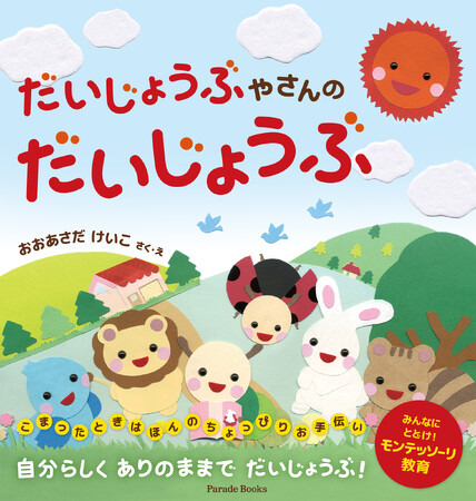 飛ぶのが苦手なテントウムシ、歌が下手な小鳥、ちっとも強くないライオンなど森の仲間たちは、できるはずのことができなくて、「だいじょうぶやさん」にやって来ます。「だいじょうぶやさん」の店長ムーくんは、みんなの「こまった」をニッコリわらってお手伝い。ムーくんの「だいじょうぶ」のひと言と、ほんの少しのお手伝いで、みんなは新たな一歩を踏み出します。