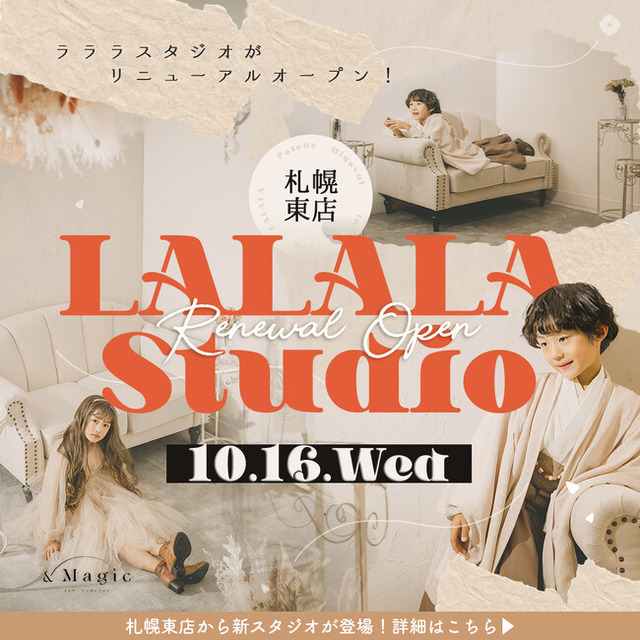 札幌市東区にあるPalette+Plus札幌東店(本社/有限会社三景スタジオ)にある、人気スタジオ`LALALA`がリニューアルオープン致します。「魔法使いのオーケストラ」をテーマに、思わず唱い出したり、踊りだしてしまうような楽しい写真が撮影できる場所として多くの方に愛されてきました。