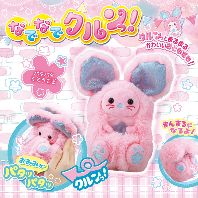 なでなでするとクルンっ!とまるまる可愛い仕草にあなたも夢中に!?癒し系電動ぬいぐるみペットトイ「なでなでクルンっ!」に新しいお友達「パタパタミミうさぎ」が登場!