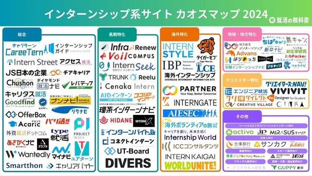 新卒学生向けの就活情報サイト「就活の教科書」は、「インターンシップ系サイト」91サービスを網羅したカオスマップを2024年9月26日(木)に公開したことをお知らせいたします。