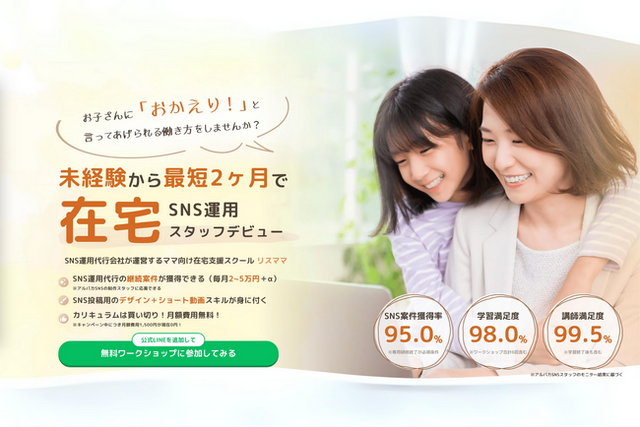 SNS運用代行サービス「アルパカSNS(https://snsdaiko.jp)」を運営する合同会社OnTech(本社東京・中野区、堀上幸雅代表/以下OnTech)は10月1日、初期費用250,000円(税込275,000円)のママ向け在宅支援スクール「リスママ」(https://lismama.jp)を提供開始いたしました。なおリリース記念キャンペーン中につき、月額費用1,500円(税込1,650円)が無料となっております。