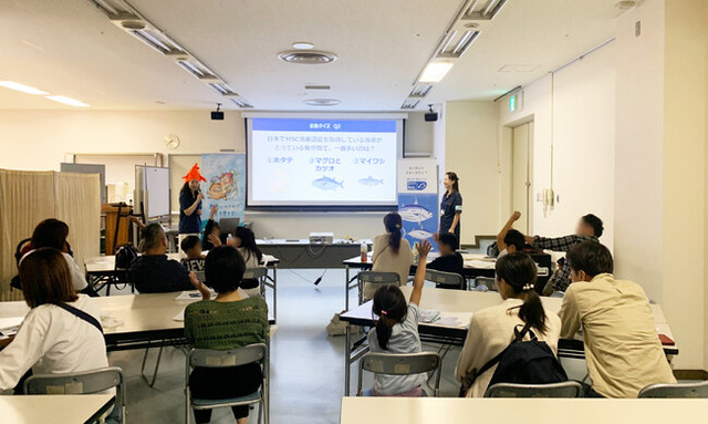 水産資源や環境に配慮した持続可能な漁業、養殖の普及に取り組む非営利団体MSC(海洋管理協議会)ジャパンおよびASC(水産養殖管理協議会)ジャパンは、10月12日(土)、小学生とその保護者を対象に「サステナブル・シーフード」に関する教育イベントを名古屋港水族館で実施しました。このイベントは、MSC「海のエコラベル」、ASCラベルが付いた水産物を選ぶことを促進する、10月31日(木)まで開催中のキャンペーン「サステナブル・シーフード・ウィーク2024」の一環として行われました。