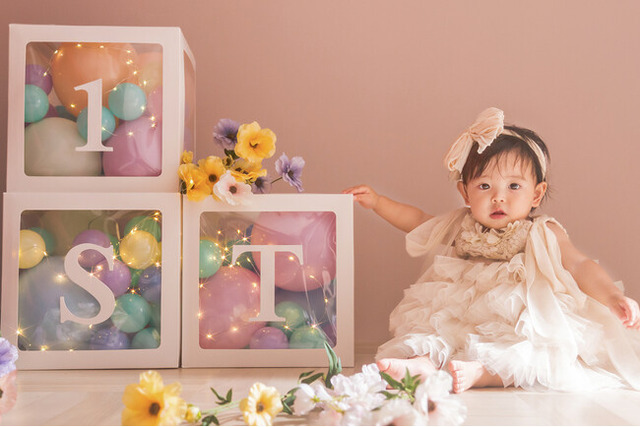 特別なご記念『はじめてのおたんじょうび』、フリルたっぷりのドレスでおめかししました!