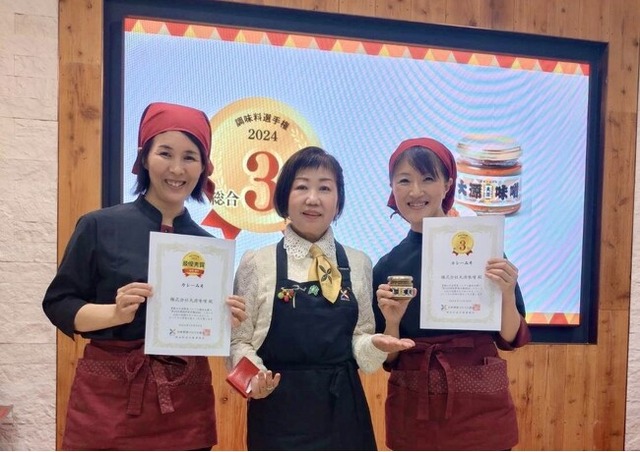 株式会社大源味噌(本社:大阪府大阪市、代表取締役:室井郁子)は、「カレーみそ」が10月20日(日)「第15回 調味料選手権2024」にて、総合3位・みそ部門最優秀賞をW受賞致しましたことをお知らせいたします。一般社団法人日本地方創成協会と一般社団法人日本野菜ソムリエ協会が主催する「調味料選手権2024」は、食の専門家および一般消費者の審査により入賞50品の中から、複合的な投票および販売数など総合評価で高得点を取得した優れた調味料に与えられるアワードであり、弊社の製品では初エントリーで初W受賞の快挙となりました。