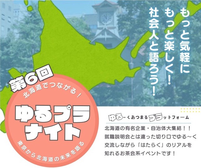 首都圏に住む大学生・専門学生を対象に、北海道の企業や自治体と交流するイベント「北海道でつながる!第6回ゆるプラナイト」を開催します。