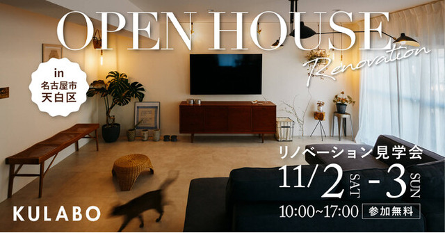 愛知県でリノベーション事業を展開する株式会社sumarch(本社:愛知県名古屋市中村区、代表取締役:鳥居儀彰、以下KULABO)は、マンションリノベーション見学会を2024年11月2日(土)・3日(日)、愛知県名古屋市天白区にて開催いたします。