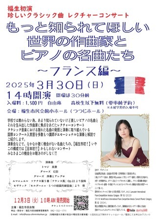 【イベント名】もっと知られてほしい世界の作曲家とピアノの名曲たちーフランス編ー