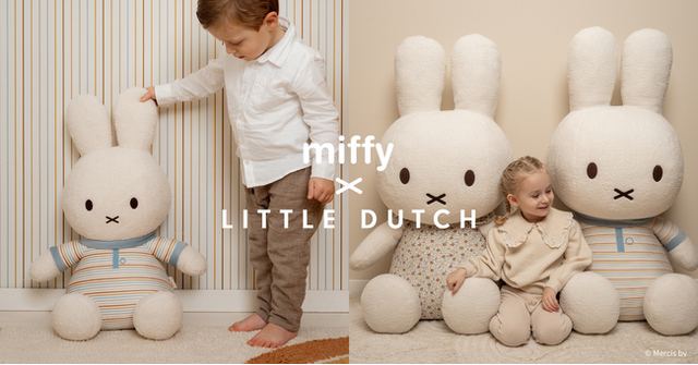 今春、日本での展開がスタートした、リトルダッチのミッフィーコラボレーションアイテム。ふんわりと上質なぬいぐるみ生地に、ブランドを代表する2種類のヴィンテージラインのテキスタイルを取り入れた、プレミアムなラインナップです。ミッフィーが持つ親しみやすい世界観にエレガントな甘さが融合したアイテムは、長年のミッフィーファンの心をもくすぐり、発売直後から多くのファミリーにお楽しみいただいています。