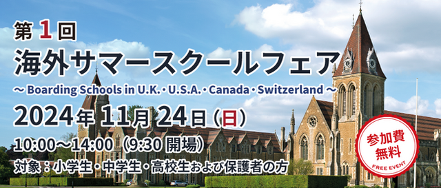 株式会社日本入試センター (本社:東京都渋谷区/代表取締役社長:高宮英郎) が運営する海外進学プログラム Y-SAPIX Global Campus (以下、YGC) 、アメリカに本部を構え、アメリカ・カナダ・スイスのボーディングスクールの留学支援を専門とする Triple Alpha は、これまでに3,000人以上の生徒をイギリスの名門パブリックスクール (寮制の中等教育機関) に送り出してきた BE Education とともに、「第1回 海外サマースクールフェア」を開催します。