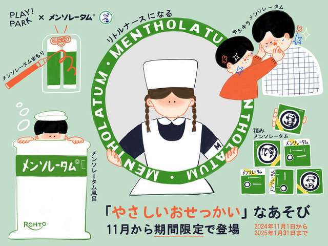 今回のイベントは、「メンソレータム」ブランドの「やさしいおせっかい」というブランドメッセージをテーマに、エイアンドビーホールディングス株式会社が企画・運営を行う子どもが自由な発想で遊べるキッズパーク「PLAY! PARK」において開催されます。
