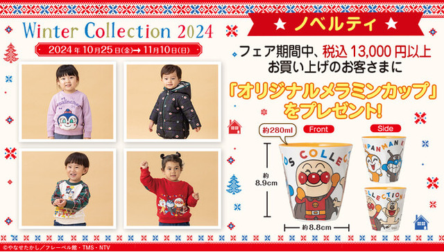 また、商品の発売にあわせて、店頭およびバンダイナムコグループ公式通販サイト「プレミアムバンダイ内アンパンマンキッズコレクションオンラインショップ」( https://p-bandai.jp/anpanman-kids/ )にて対象商品を13,000円(税込)以上お買い上げのお客様に「オリジナルメラミンカップ」をプレゼントするキャンペーンを開始いたします。