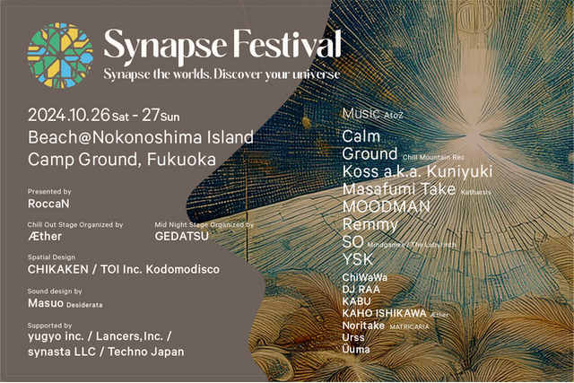 福岡県の能古島キャンプ場にて、2024年10月26日から27日までの2日間、野外フェスティバル『Synapse Festival』を開催いたします。