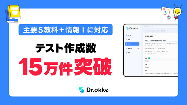 この度、Dr.okkeの累計テスト作成数が15万件を突破しましたので、ご報告させていただきます。