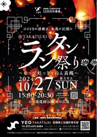 令和6年10月27日(日曜日)、夜空に向かってランタンを飛ばすイベント「ランタン祭り~やっぱ好っきゃねん高槻~」が安満遺跡公園で開催。450基のランタンが高槻の夜空を飛ぶ姿は見ごたえ抜群です。ほかにも、子どもたちが大好きな輪投げ、射的などの露店や市内人気店による飲食ブースもあって、楽しい企画が盛りだくさんです。ぜひお越しください。