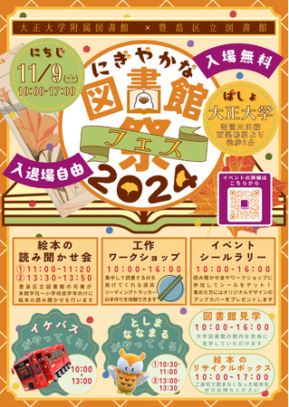 大正大学(学長:神達知純、所在地:東京都豊島区)附属図書館では、11月9日(土)に豊島区と共催で『にぎやかな図書館祭(フェス)2024』を開催します。