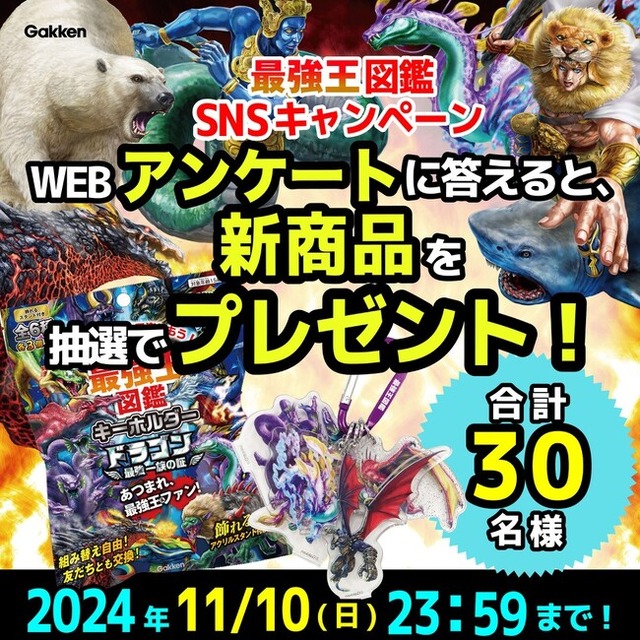 株式会社 学研ホールディングス(東京・品川/代表取締役社長:宮原博昭)のグループ会社、株式会社 Gakken(東京・品川/代表取締役社長:南條達也)は、「最強王図鑑」シリーズに関するアンケートを2024年10月11日(金)より開始いたしました。