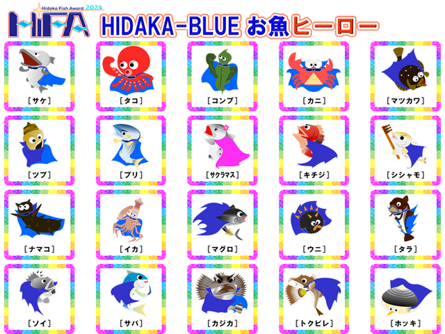 選ばれた上位5体を「HIDAKA-BLUE お魚ヒーローズ」としてホームページで発表します。