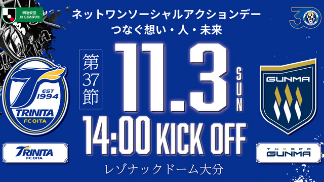 ◆開催日時:2024年11月3日(日祝)14:00キックオフ ◆開催試合:2024明治安田J2リーグ第37節 大分トリニータ VS ザスパ群馬