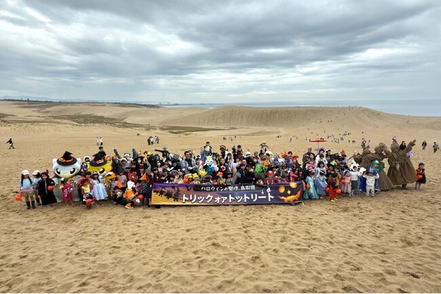 鳥取県は、ハロウィンの聖地化を目指しており、その取り組みの1つとして「鳥取砂丘ハロウィンパーティー」を、10月27日(日)に初めて開催しました。限られたスペースに人が集中することなどへの懸念から、都市部では「ハロウィン」の楽しみ方に一部規制が設けられている現状を受け、広大な鳥取砂丘を活かした日本最大スケールのハロウィンパーティーとして「鳥取砂丘ハロウィンパーティー」を企画し、全国の皆様を招待しました。