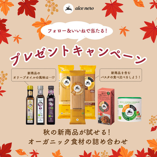 イタリアのオーガニック食材を取り扱う「Alce Nero(アルチェネロ)」は、2024年10月25日(金)~11月15日(金)の期間中Instagramキャンペーンを開催。当選者の10名様にはアルチェネロのオーガニック食材がプレゼントされます。
