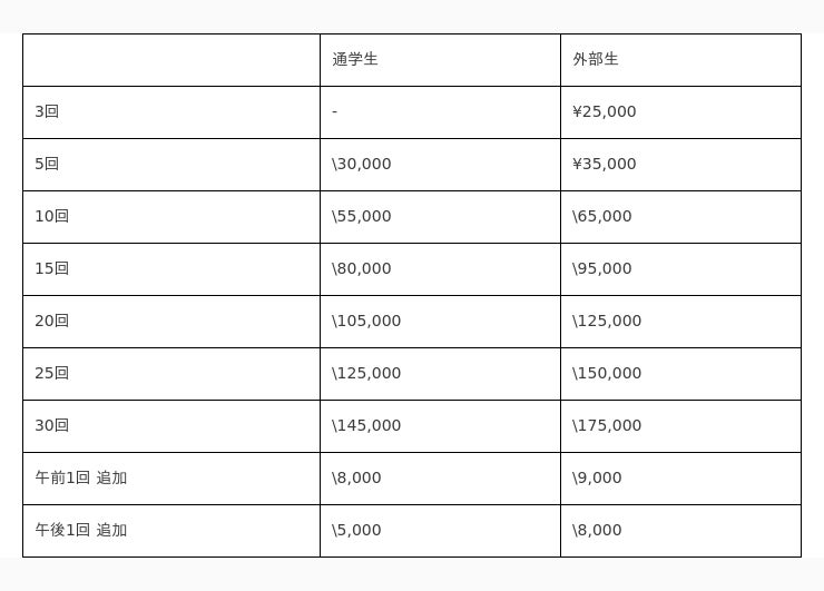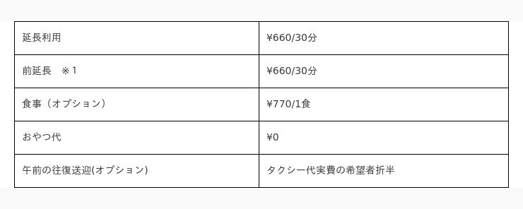 ・利用体系:回数制(3日から申込可能)