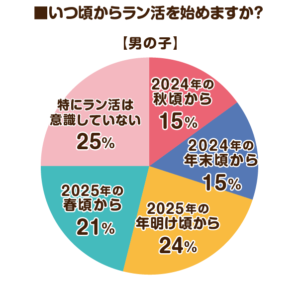 次点は、男の子「2025年の年明け頃から」、女の子「2025年の春頃から」で、2025年の年明けからラン活を始める人が多いようです。