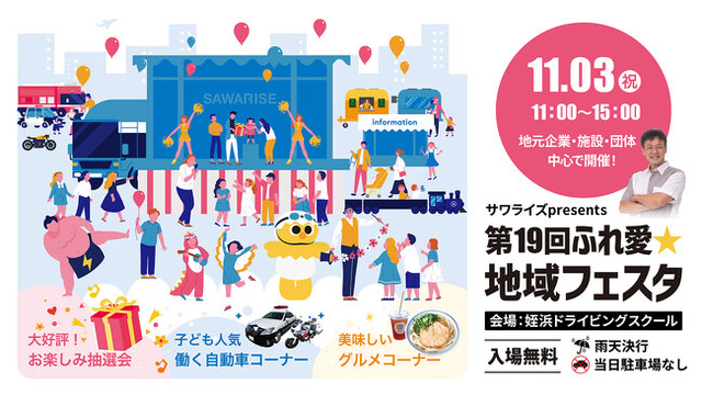 福岡市西区姪浜で街づくり、ものづくり、医療介護、教育、レジャー等のビジネスを展開する株式会社サワライズ(本社:福岡県福岡市西区、代表取締役:柴田 耕治)は、11月3日(祝)に「第19回 ふれ愛☆地域フェスタ」を開催します。