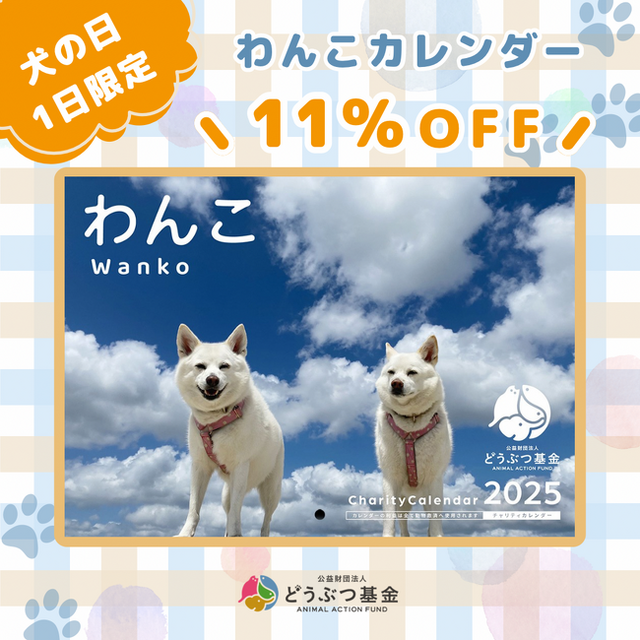 犬や猫の殺処分ゼロの実現を目指す公益財団法人どうぶつ基金(所在地:兵庫県芦屋市、理事長:佐上邦久)が運営する「さくらねこSHOP」では、11月1日の「犬の日」にちなんで「わんこカレンダー」を11%OFFで購入できる1日限定のセールを開催いたします。