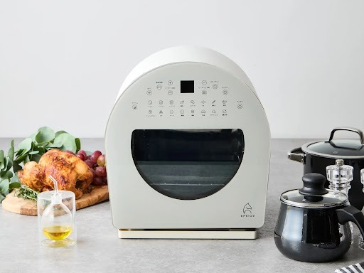 調理家電にもかかわらずインテリアとして違和感のないフォルムと、一人暮らしの部屋においても場所を取らないサイズ。機能面でも油を使わないヘルシーなノンフライ揚げ物調理と、食材をセットするだけで調理が可能なほったらかし調理という2つの特徴を持ち、1台6役の調理を可能にすることから「魔法の調理器具」として好評頂いております。