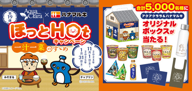 水を通じて“生活”“環境”“健康”の創造を目指すアクアクララ株式会社(本社:東京都港区、代表取締役社長:赤津裕次郎)は、全国のアクアクララ会員を対象にクローズドキャンペーンとして、ハナマルキ株式会社(本社:長野県伊那市西箕輪2701 代表取締役社長:花岡周一郎 )の人気商品とのコラボレーションキャンペーンを「一汁一菜のすゝめ」のテーマにて実施いたします。