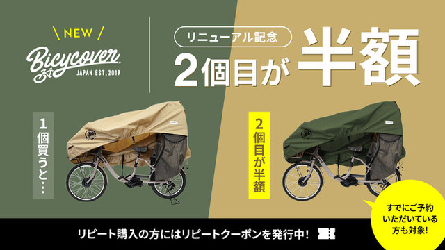また、発売を記念して、NEW BICYCOVERを対象とした「2個目半額キャンペーン」を実施いたします。キャンペーン期間中にBICYCOVER公式オンラインストアでNEW BICYCOVERを2つカートに入れると、2個目が自動的に半額となるお得なキャンペーンです。既にご予約いただいている方も対象となっております。