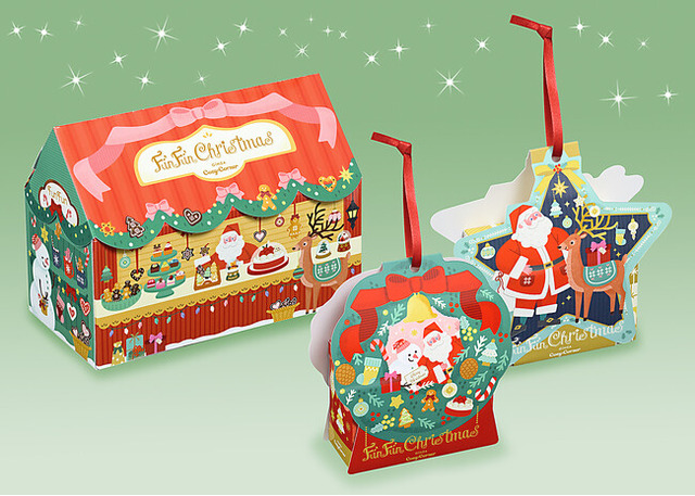 特長:ツリーに飾る星形のオーナメントをイメージしたボックスです。表面はオーナメントを眺めるサンタさんとトナカイさん、裏面はトナカイさんとプレゼントを手に持つサンタさんをデザイン。中にはホワイトチョコクッキーとフランボワーズクッキーをアソートしました。