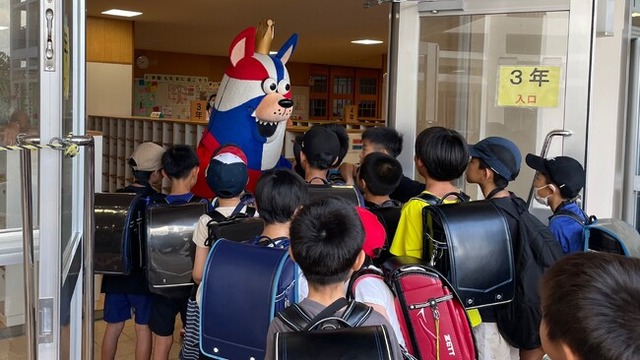 今月は、ゴーディーがサプライズ登場した学校や、部活動クラブのメンバーと一緒にあいさつ運動を盛り上げた学校もありました。ゴーディーの訪問を心待ちにしてチラシを作ってくれた学校もあり、各学校で子どもたちと楽しい朝の時間を過ごすことができました。
