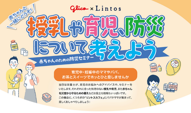 株式会社三和製作所(本社:東京都江戸川区 代表取締役:小林広樹)は、「インクルージョン・ファーム構想」をテーマに掲げ展開するカフェ「Lintos cafe(以下、リントスカフェ)」で、江崎グリコ株式会社とのコラボ企画として『赤ちゃんのための防災セミナー』を開催します。当日は江崎グリコの「栄養士・子供心理カウンセラー」が妊娠期~育児期のママやパパへ向けて、防災セミナーや、育児のお悩みへのアドバイス等を行います。
