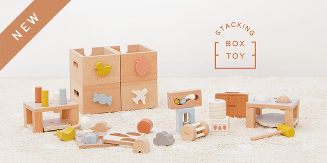 「スタッキングボックストイ」は単品でも楽しめるのはもちろん、ボックスはスタッキングでき集めていく楽しさがあるので、1つずつの購入も、まとめての購入もおすすめでギフトにも最適のアイテムです。