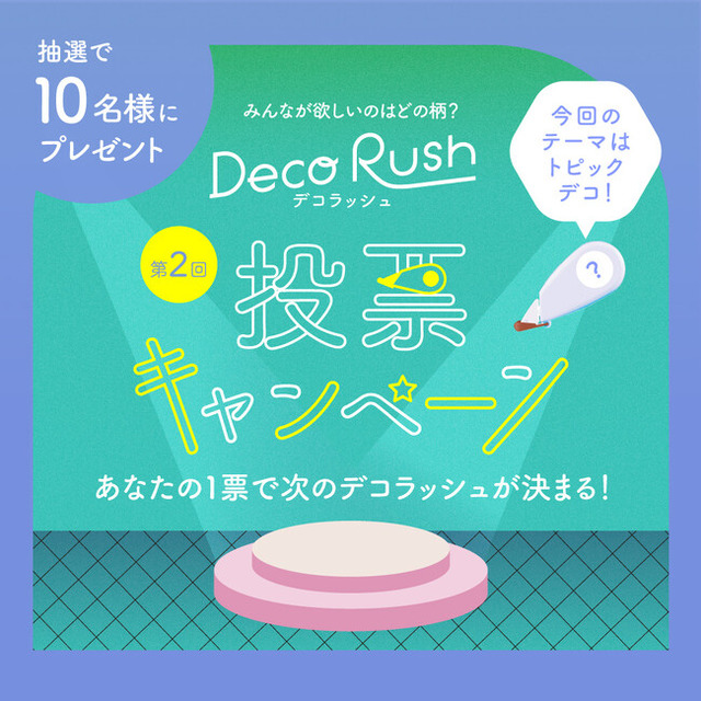 本キャンペーンは、21種類の候補デザインの中から、欲しいと思うデザイン上位5個を投票していただくユーザー投票企画です。2022年に実施し、ご好評いただいた企画の第2回目となります。投票数が多い柄は2025年夏に商品化予定です。また、商品化した「デコラッシュ」が抽選で当たるプレゼント企画も同時開催。あなたの一票で次のデコラッシュが決まります。ぜひご参加ください。