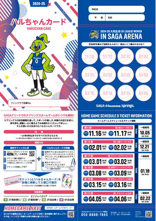 SAGAアリーナでのスプリングスホームゲームがいつでも無料観戦可能となる「ハルちゃんカード」企画のご案内です。