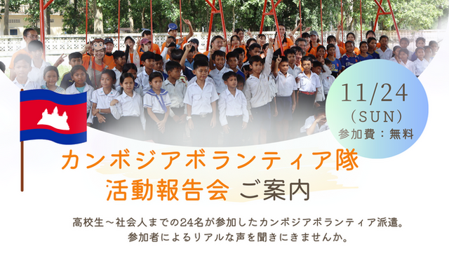 今年は、2024年8月18日~25日(帰国26日)にかけて開催。書類選考・面接を経て、全国の高校生、大学生、社会人までの幅広い世代のメンバー総勢24名がカンボジアへ派遣されました。