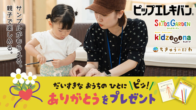 株式会社イオンファンタジー(本社:千葉県千葉市、代表取締役社長:藤原徳也、以下、当社)は、ピップ株式会社(本社:大阪市中央区、代表取締役社長:松浦由治)と共同し、勤労感謝の日に合わせて、子ども達が日頃の疲れを感じているおうちのひとに「いつもお仕事ありがとう」の気持ちを伝える「大好きなおうちのひとに“ピッ!”ありがとうをプレゼント!」イベントを、当社が運営するプレイグラウンド「スキッズガーデン」、「キッズーナ」、「ちきゅうのにわ」の全63店舗にて、11月16日(土)、17日(日)、23日(土・祝)の3日間実施いたします。