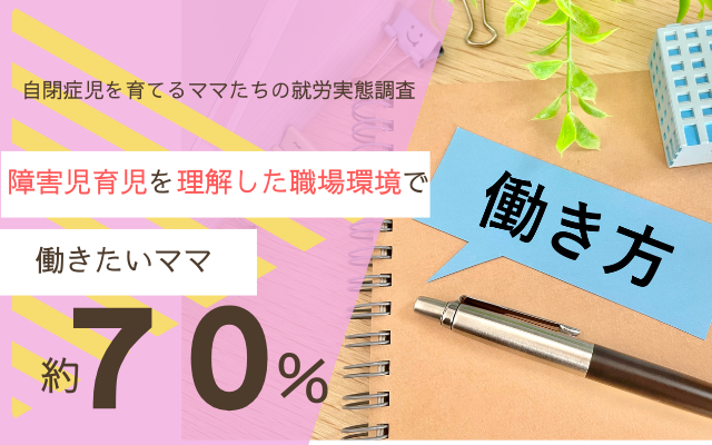 今回のアンケート結果から、自閉症児を育てるママの就労状況は、働いていない方が約4割、時間に自由がきく働き方を選択されている方は約3割であることがわかりました。