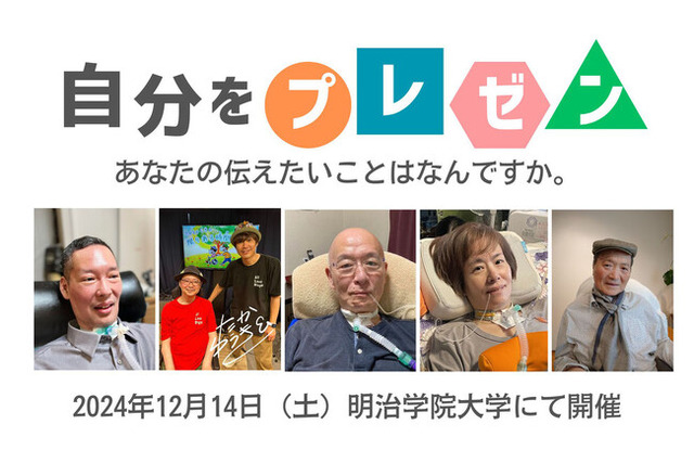NPO法人ICT救助隊と自分をプレゼン実行委委員会は、2024年12月14日(土)に、東京都港区の明治学院大学にて「ALS患者さんに聞こう!『自分をプレゼン!』」を(2024年厚労省難病患者サポート事業の一環として)開催します。