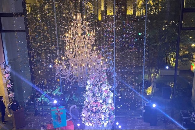 ホテル1階「ニューヨークラウンジ」にて行う、クリスマスツリーを用いた光と音のショー