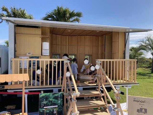 「木育トラック manaviba(マナビバ)」は、2024年に広島県三次市の一場木工所が開発した、画期的な移動式施設です。本トラックは、壁・床などの内装が木材でつくられており、正式なディーラー車検も受けています。