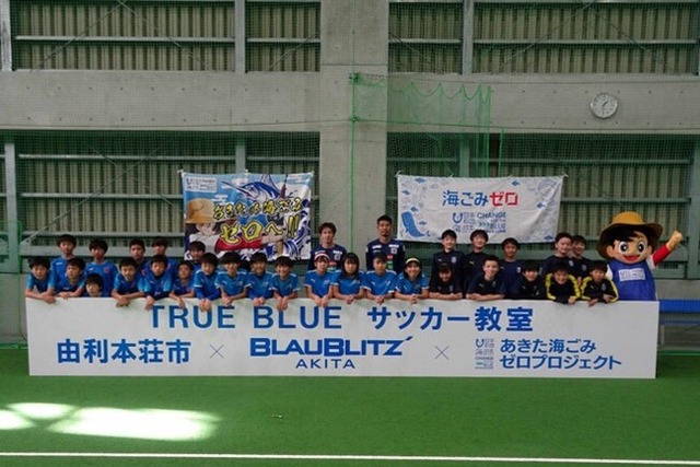 あきた海ごみゼロプロジェクト実行委員会は、11月3日(日)に由利本荘市とJ2ブラウブリッツ秋田と連携し、TRUE BLUEサッカー教室&クリーンアップを由利本荘市のナイスアリーナ・屋根付きグラウンドにて開催しました。子供たちが憧れるブラウブリッツの選手とサッカー教室と清掃活動を実施し「あきたの自然を守る」という同じ目標と活動を共有し、サッカーの技術向上とごみ抑制・ 分別意識を同時に高めていきます。この活動は、日本財団が推進する海洋ごみ対策プロジェクト「海と日本プロジェクト・CHANGE FOR THE BLUE」の取り組みの一環で開催するものです。