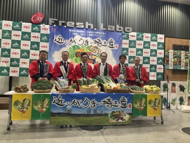 また、産出額が全国1位であるさといもや全国2位のねぎ、ほうれんそう、かぶなどの埼玉県産野菜を展示しました。